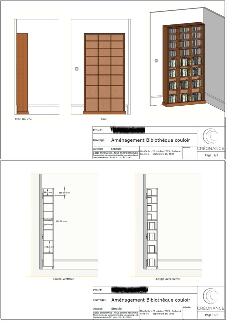 Bibliothèque sur mesure en noyer – Créonance
